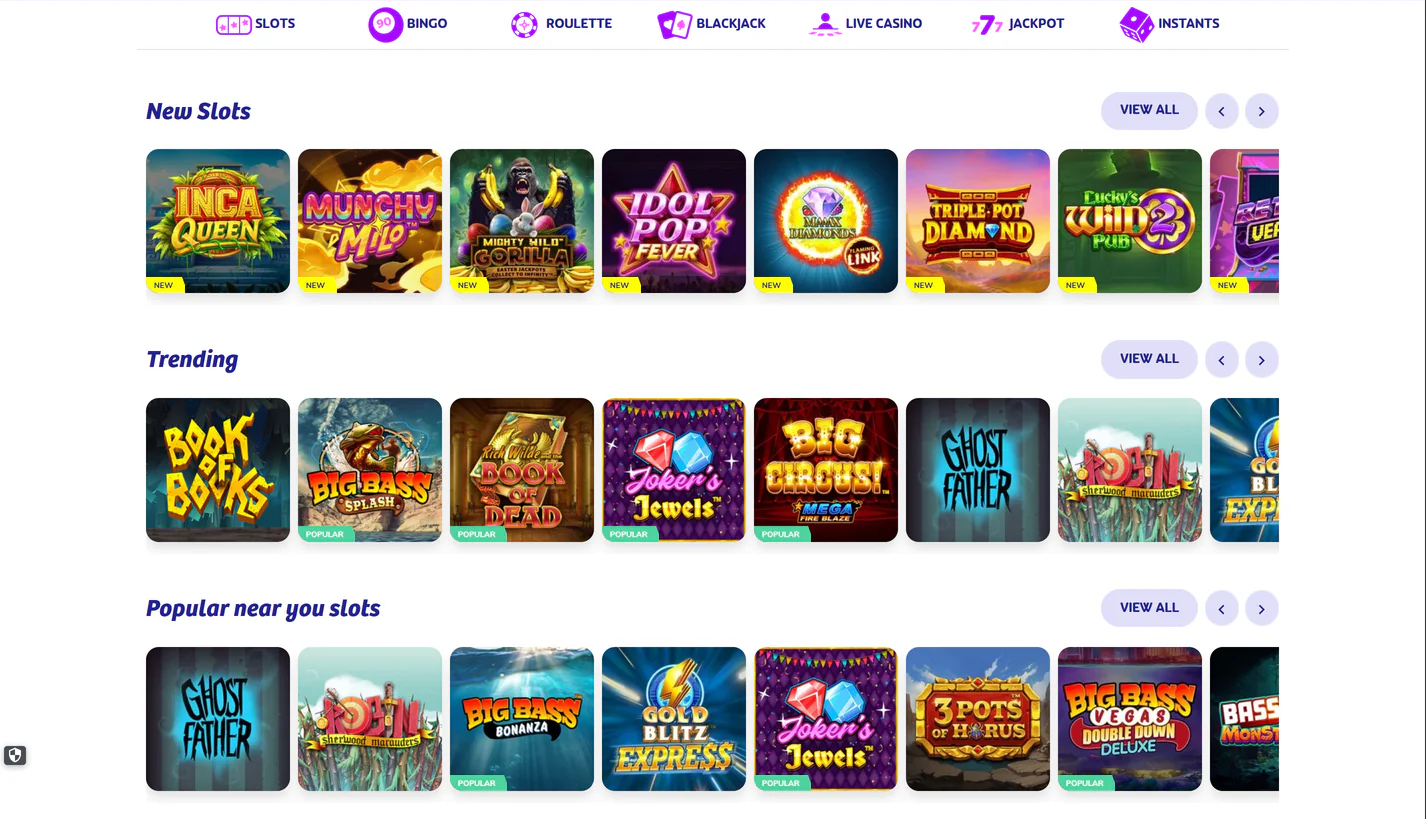 - 7,000+ casino games including slots, jackpots, live dealer, and bingo